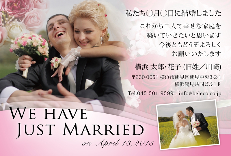 結婚報告はがき、安くて早く、仕上がりに納得の【ベレコのウエディングポストカード】